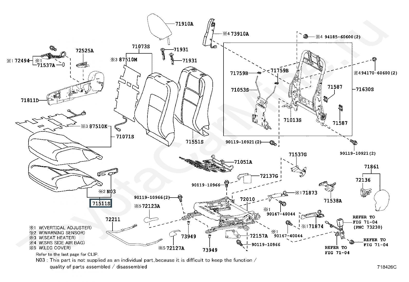 71501-02240, PAD, FRONT SEAT CUSHION, RH(FOR SEPARATE TYPE)