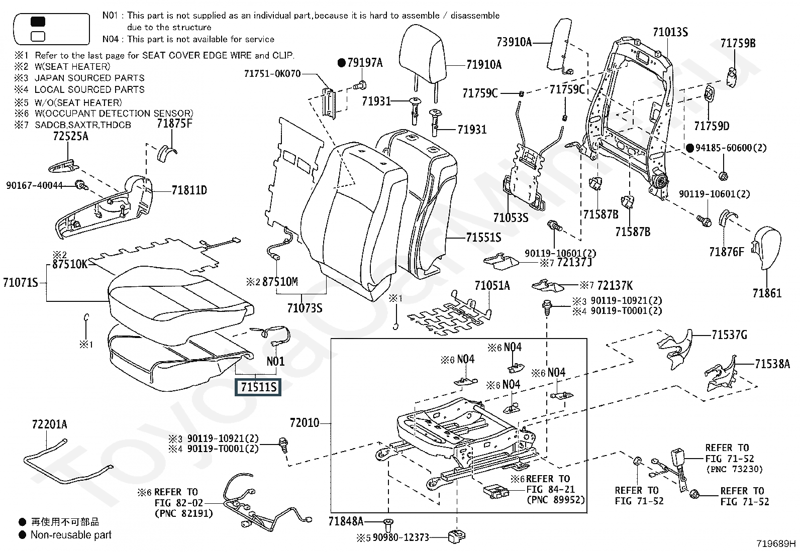 71501-0K031, PAD, FRONT SEAT CUSHION, RH(FOR SEPARATE TYPE)