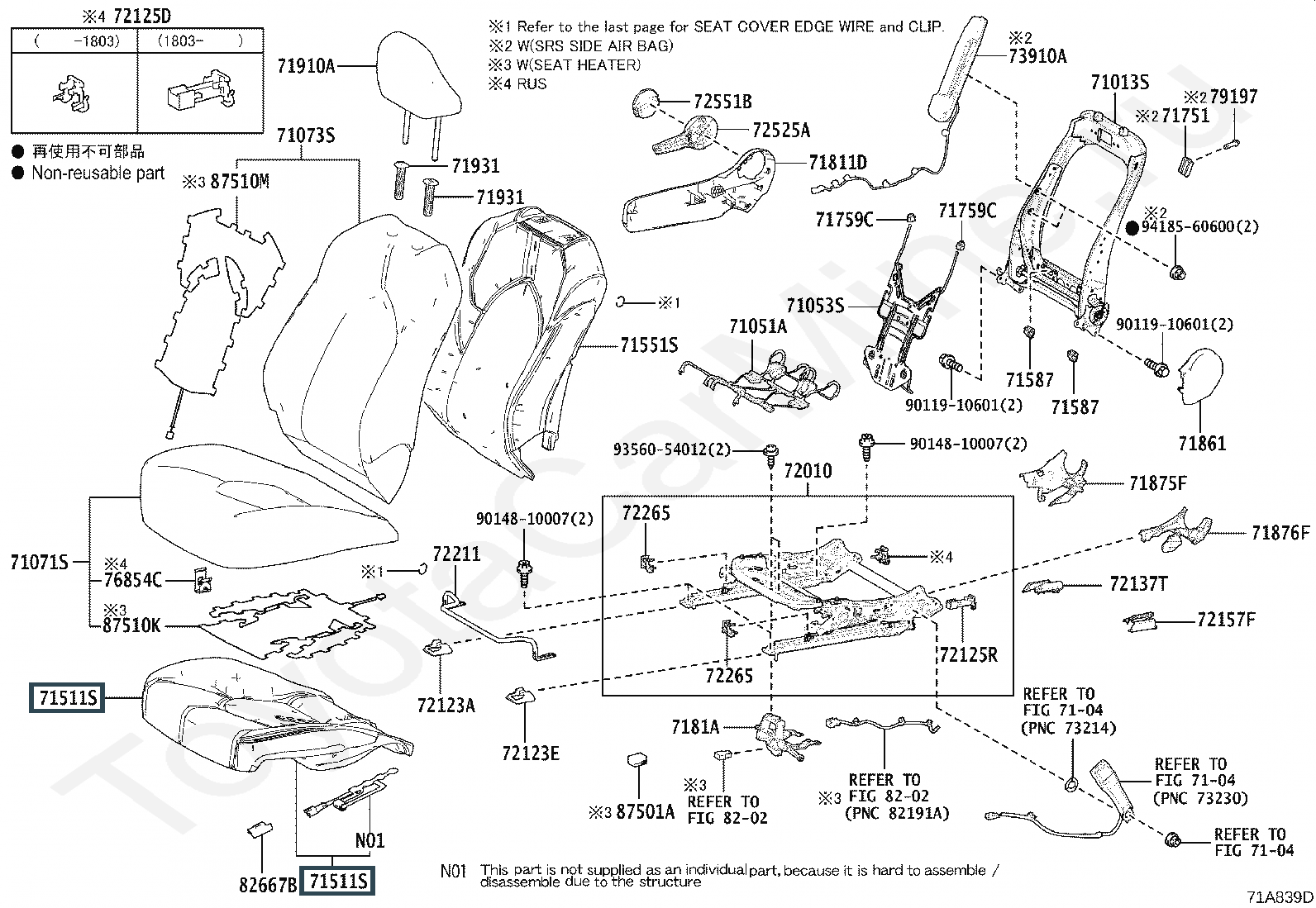 71511-06A30, PAD, FRONT SEAT CUSHION, RH(FOR SEPARATE TYPE)