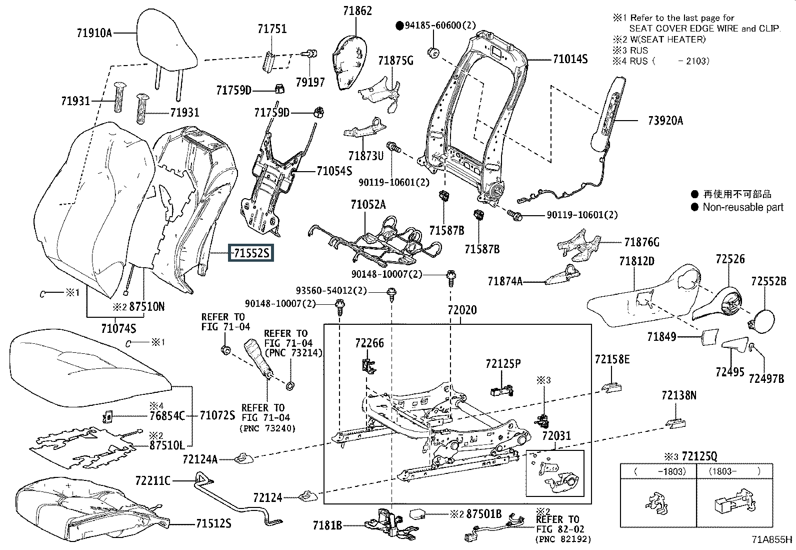71552-06710, PAD, FRONT SEAT BACK, LH(FOR SEPARATE TYPE)