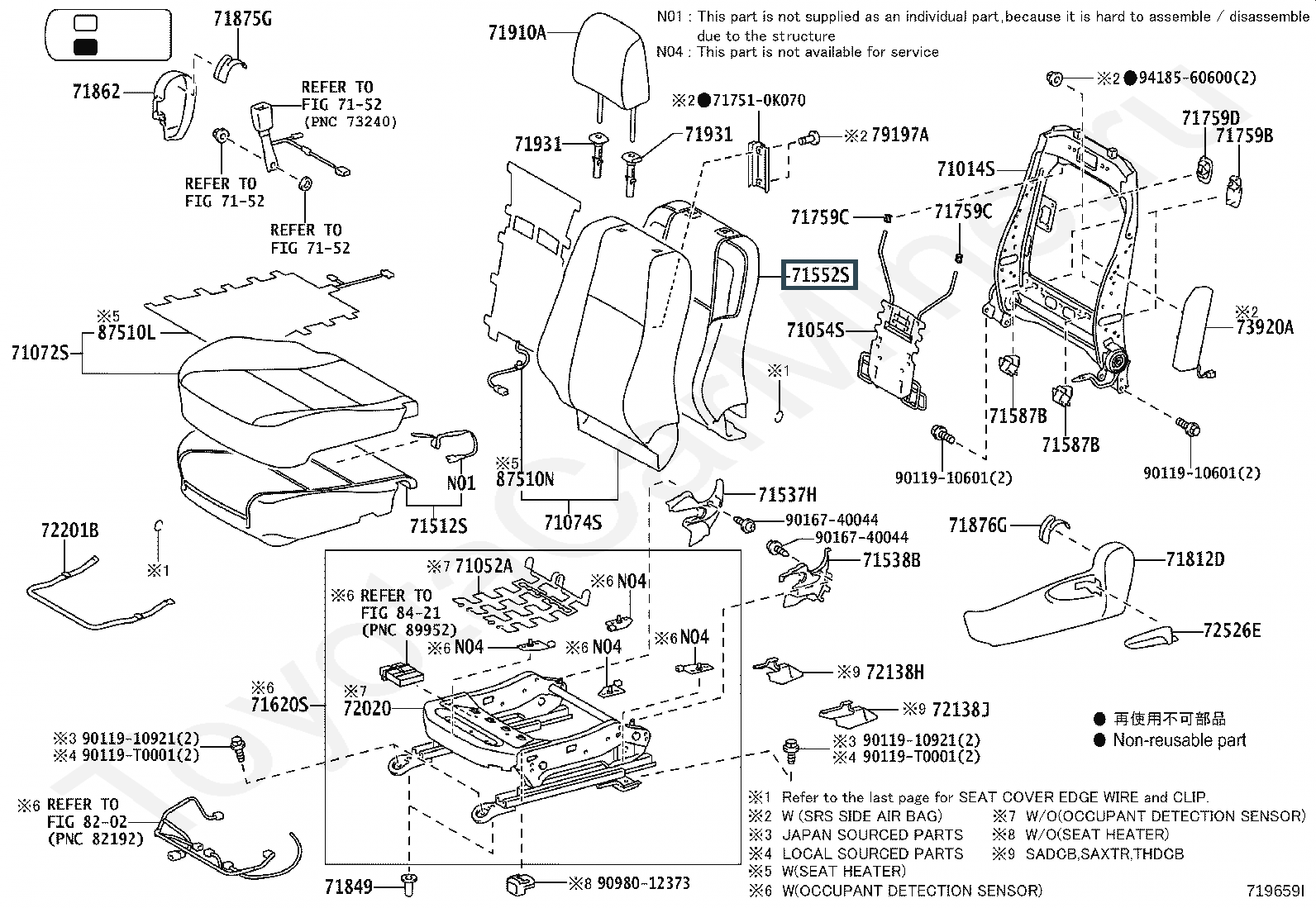 71552-0K160, PAD, FRONT SEAT BACK, LH(FOR SEPARATE TYPE)