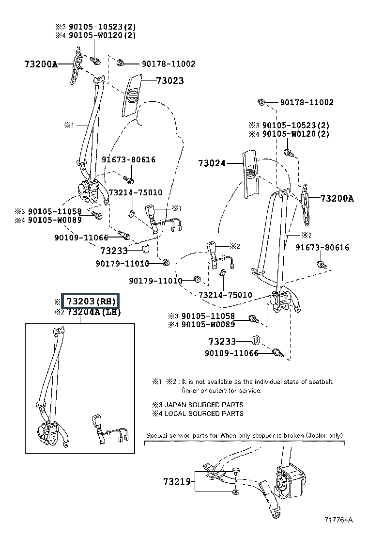 73203-33010-C0, BELT SET, FRONT SEAT, RH