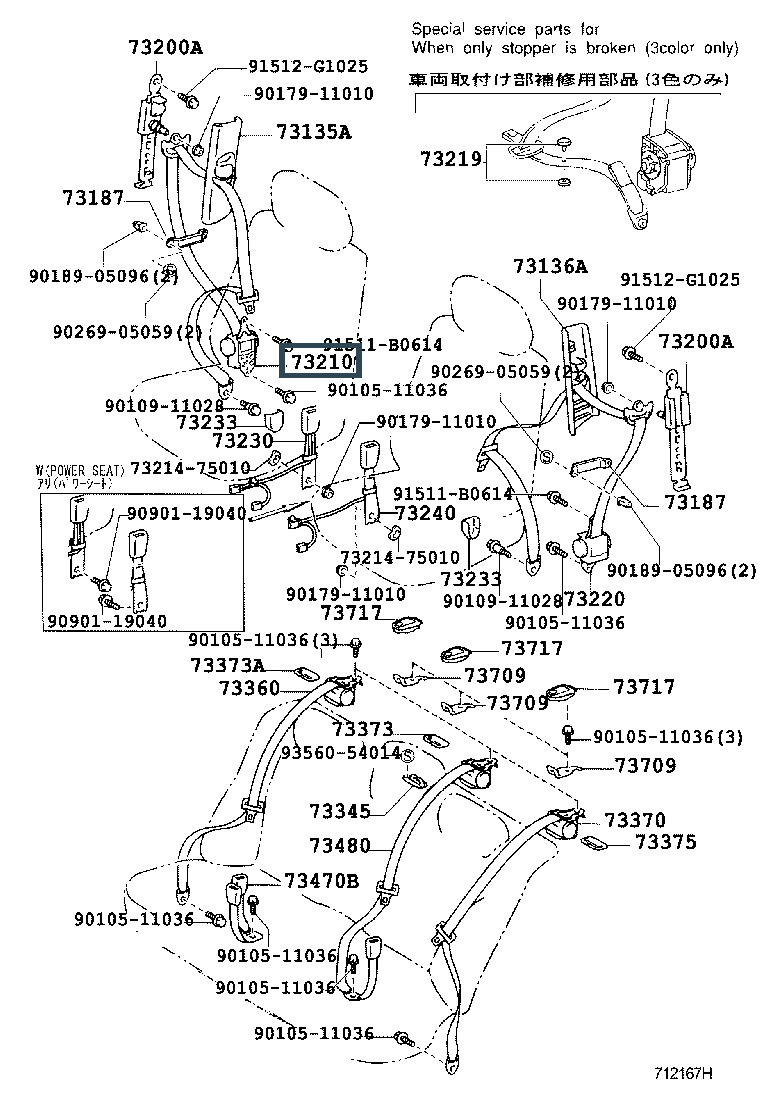 73210-33340-E0, BELT ASSY, FRONT SEAT OUTER, RH