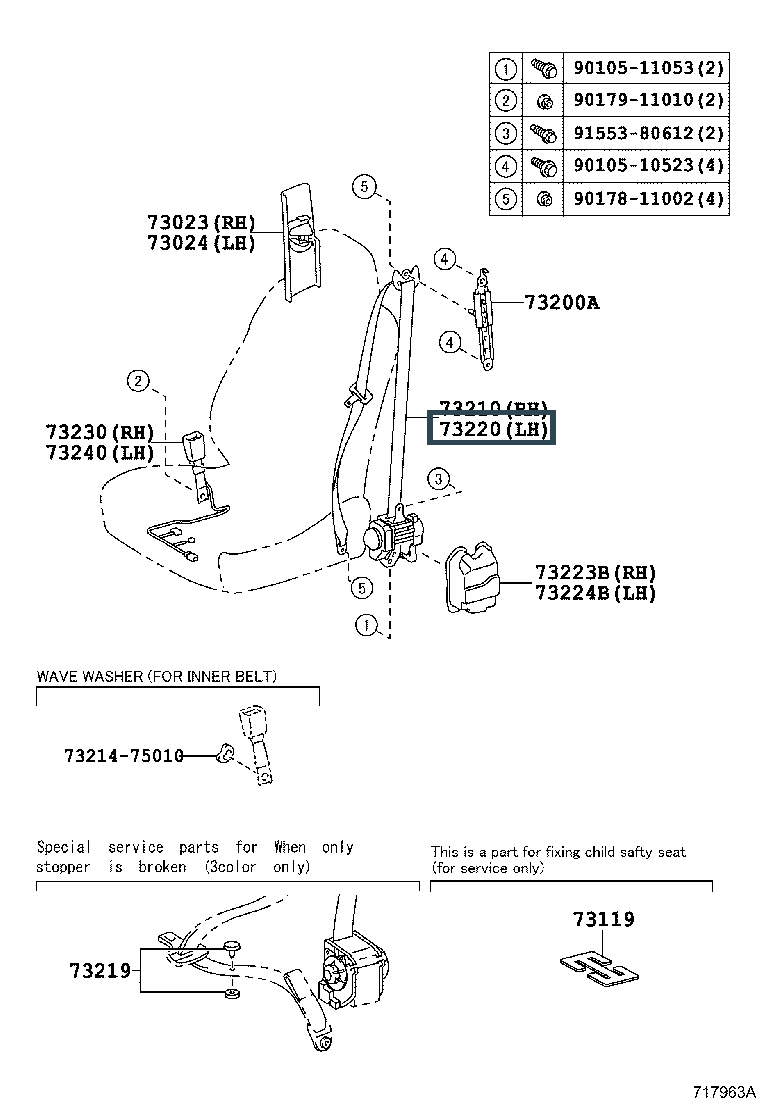 73220-33593-A2, BELT ASSY, FRONT SEAT OUTER, LH