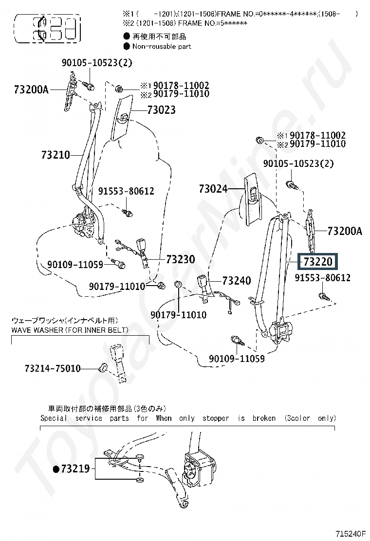 73220-60554-C0, BELT ASSY, FRONT SEAT OUTER, LH