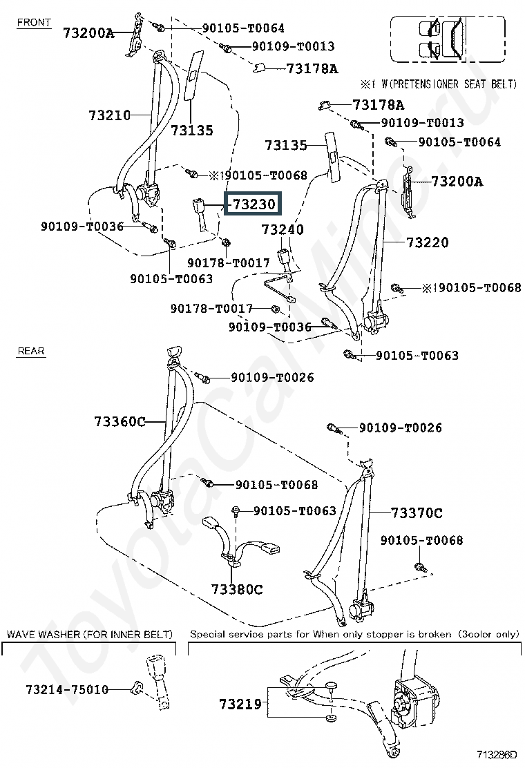 73230-0K020-B0, BELT ASSY, FRONT SEAT INNER, LH