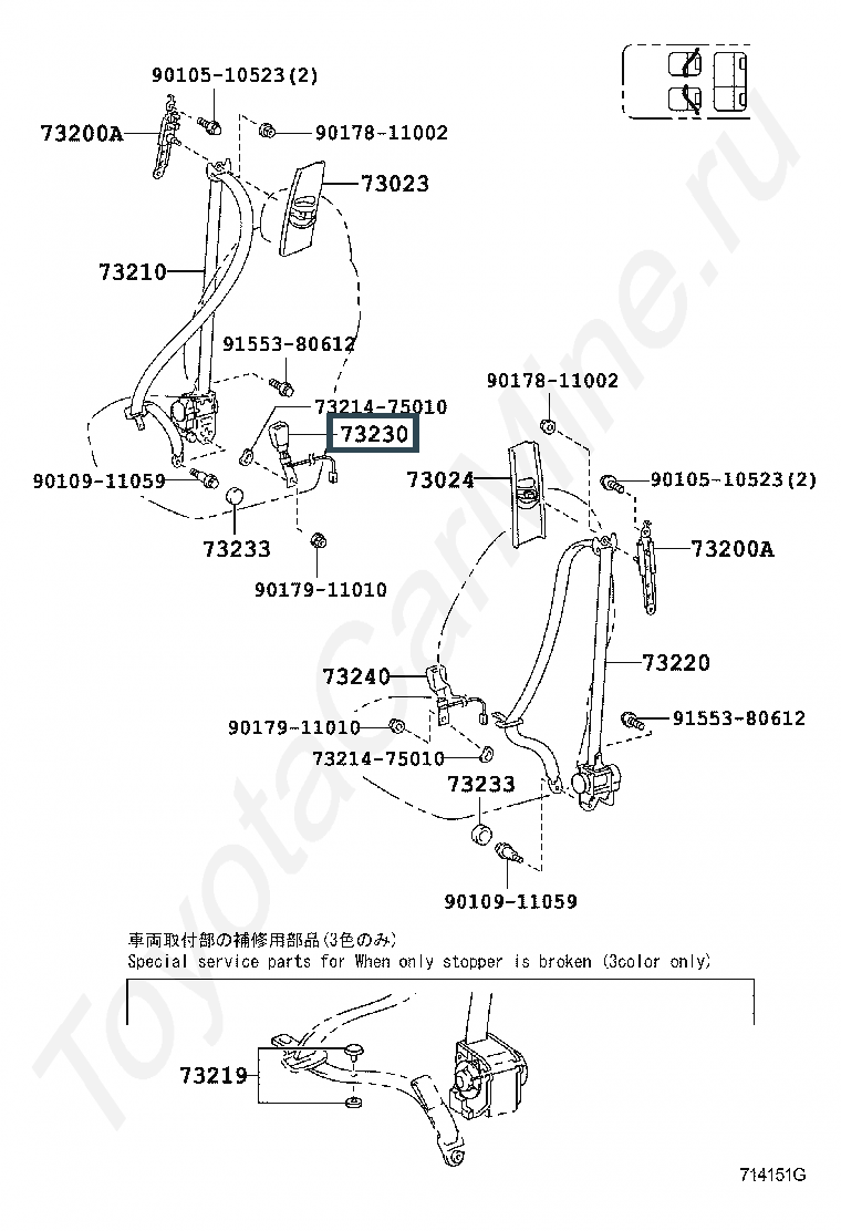 73230-42140-B0, BELT ASSY, FRONT SEAT INNER, LH