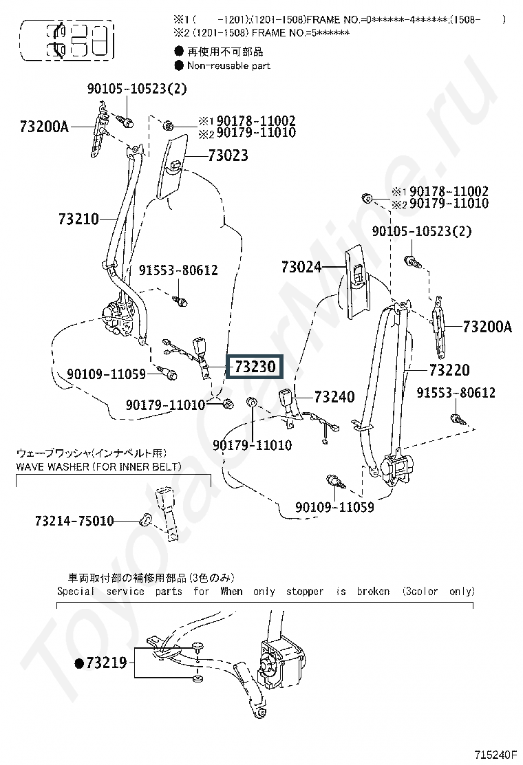 73230-60720-C0, BELT ASSY, FRONT SEAT INNER, LH