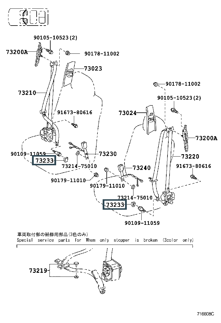 73233-35010-E0, COVER, LAP BELT OUTER ANCHOR, REAR NO.1 SEAT