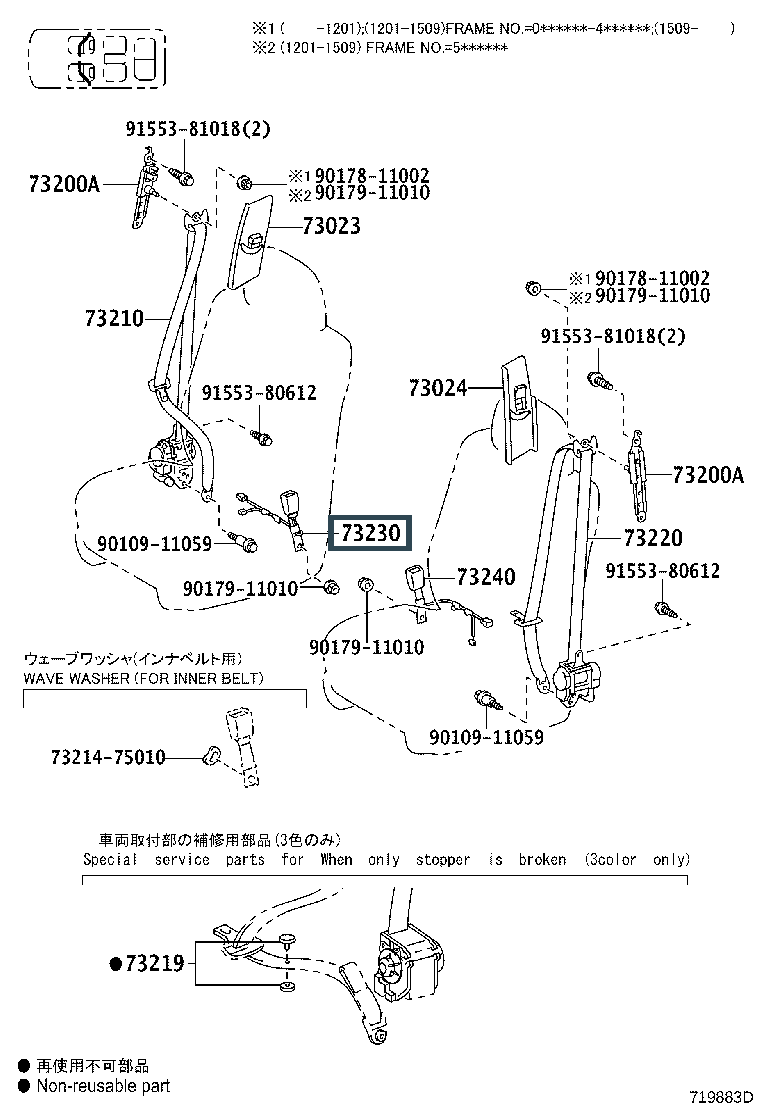 73240-60510-A0, BELT ASSY, FRONT SEAT INNER, RH