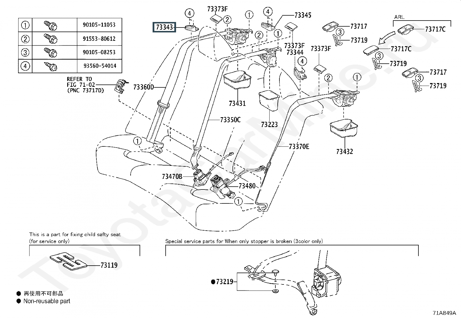 73343-33020-B0, GUIDE, REAR SEAT SHOULDER BELT, CENTER