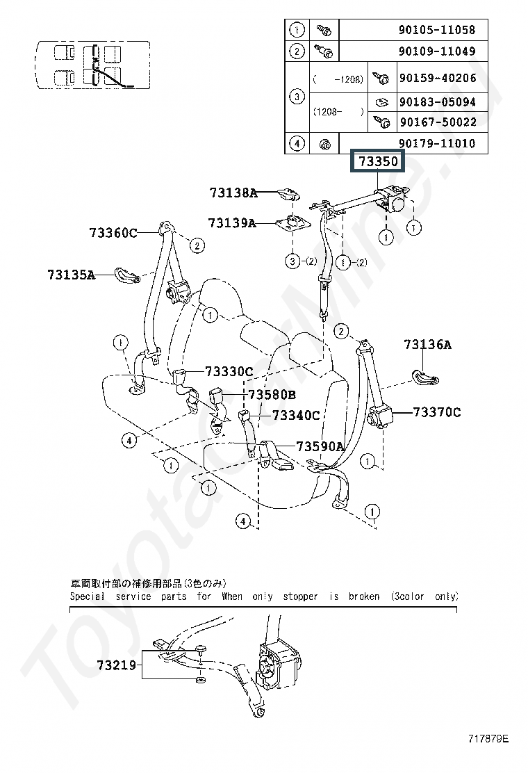 73350-44072-E0, BELT ASSY, REAR SEAT LAP TYPE, CENTER