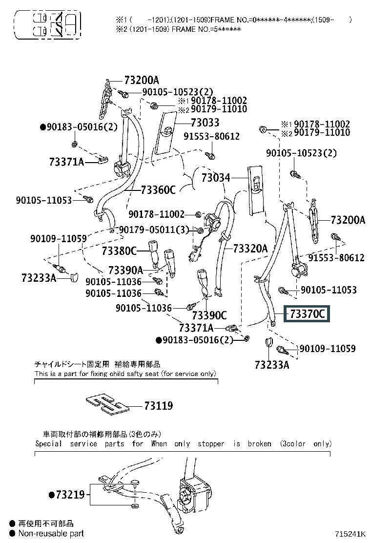 73370-60473-A2, BELT ASSY, REAR NO.1 SEAT, OUTER LH