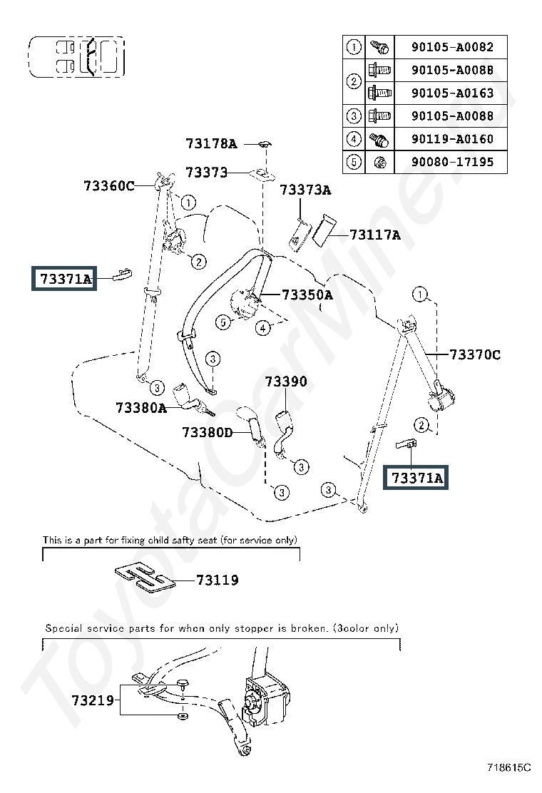 73371-0E060-C0, HANGER, REAR NO.2 SEAT SHOULDER BELT