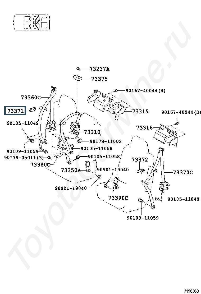 73371-58010-B0, HANGER, REAR SEAT SHOULDER BELT, LH