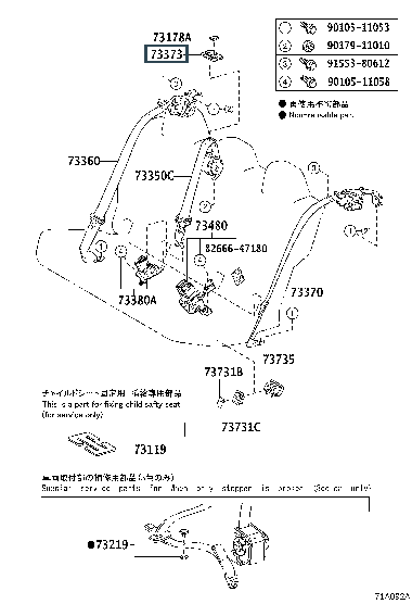 73373-48080-C0, COVER, REAR SEAT SHOULDER BELT