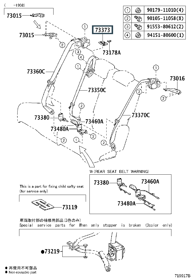 73373-48080-E0, COVER, REAR SEAT SHOULDER BELT