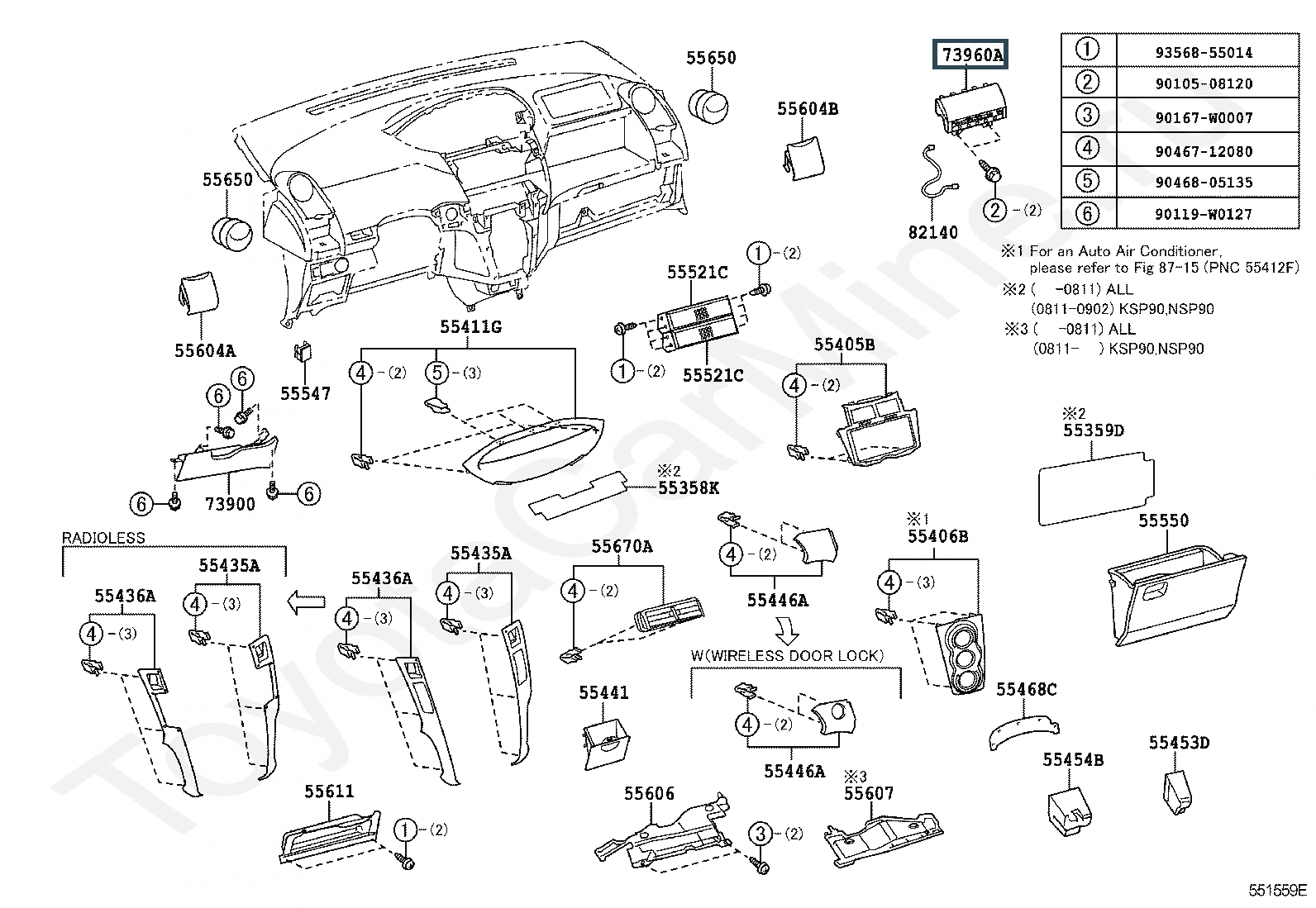 73960-52101, AIR BAG ASSY, INSTRUMENT PANEL PASSENGER W/O DOOR