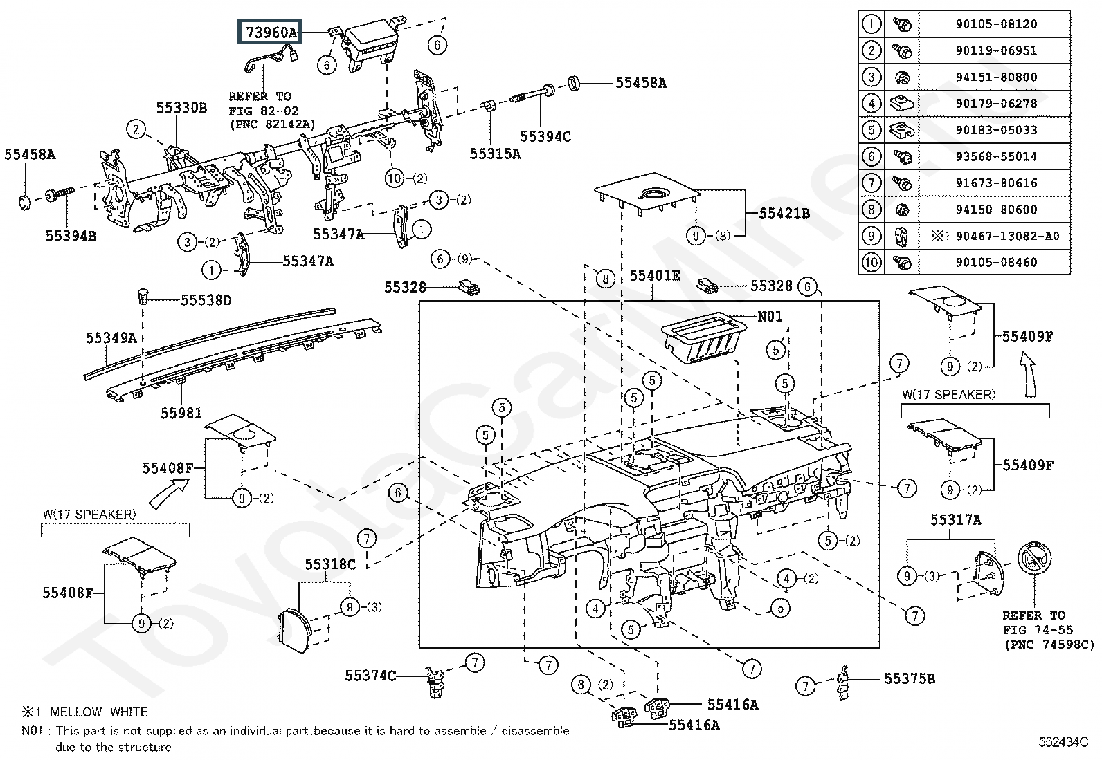 73960-60350, AIR BAG ASSY, INSTRUMENT PANEL PASSENGER W/O DOOR