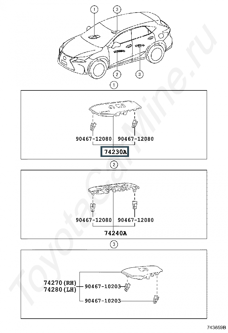 74230-78010, PANEL ASSY, FRONT DOOR ARMREST BASE, RH