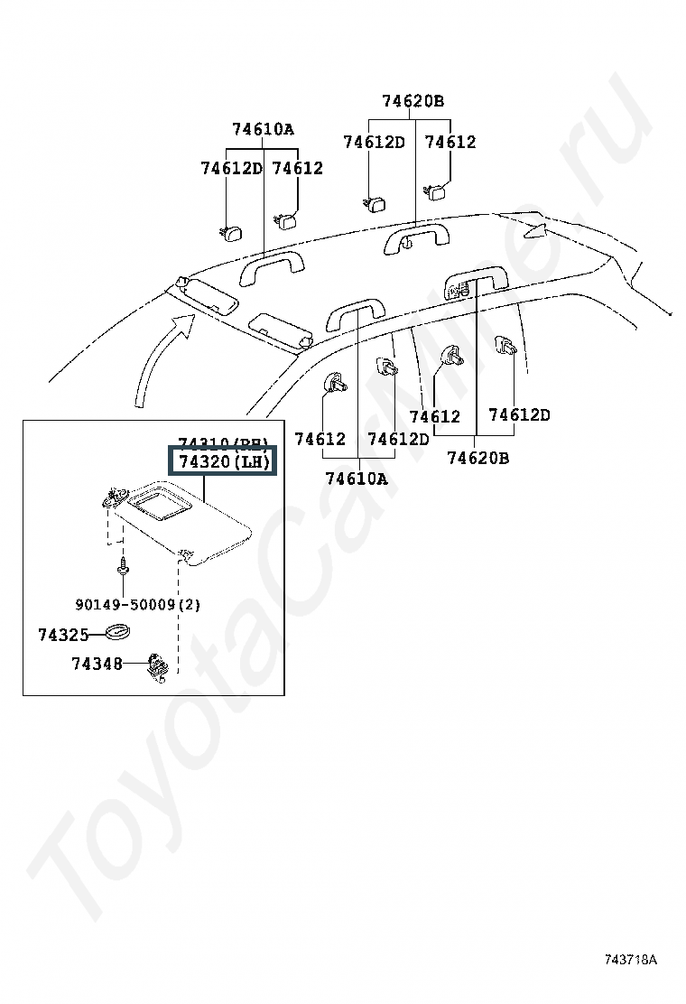 74320-0E083-B0, VISOR ASSY, LH