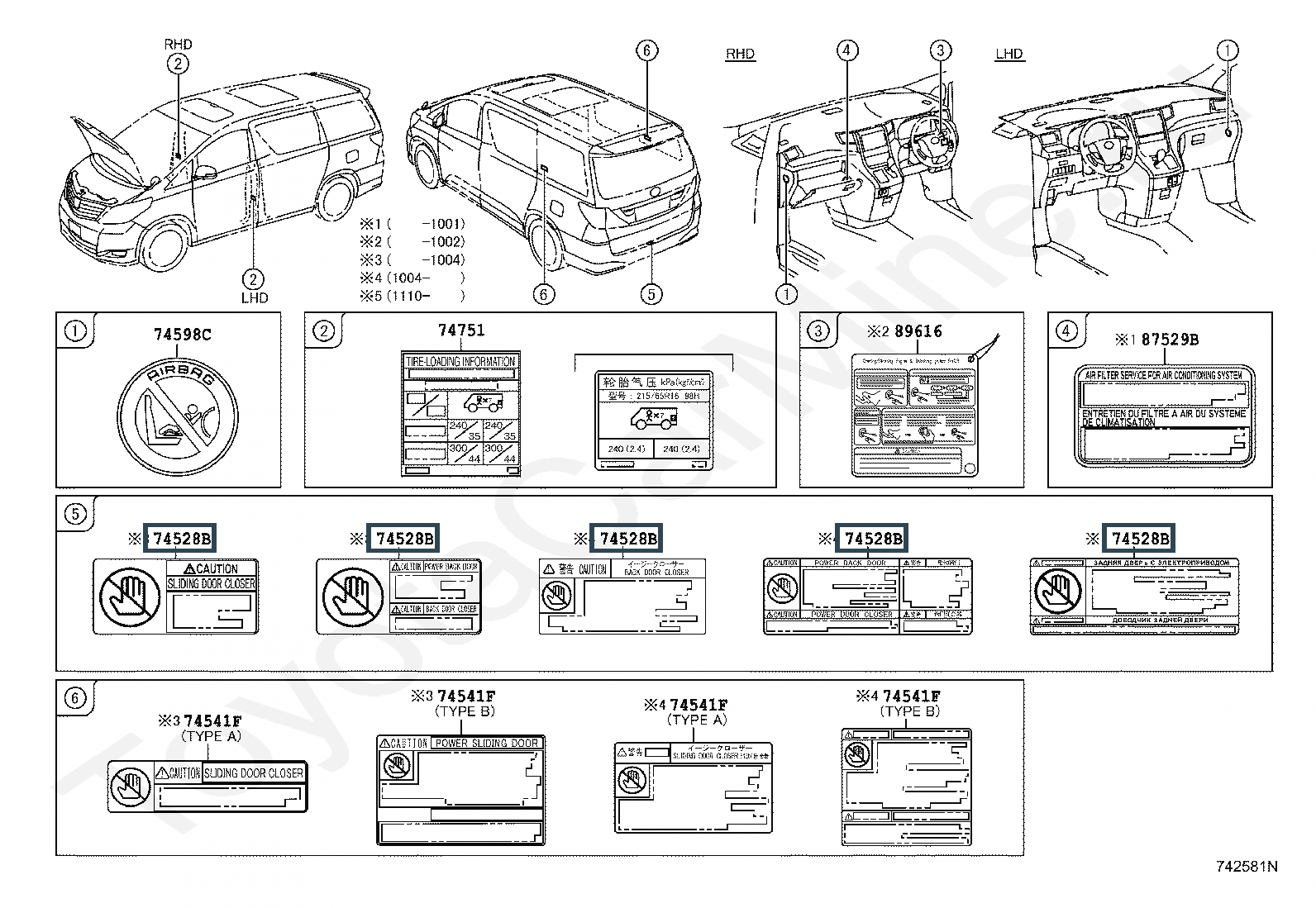 74528-58150, LABEL, BACK DOOR CAUTION