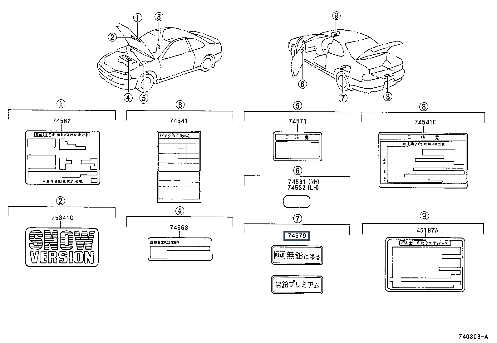 74579-24010, PLATE, UNLEADED FUEL CAUTION