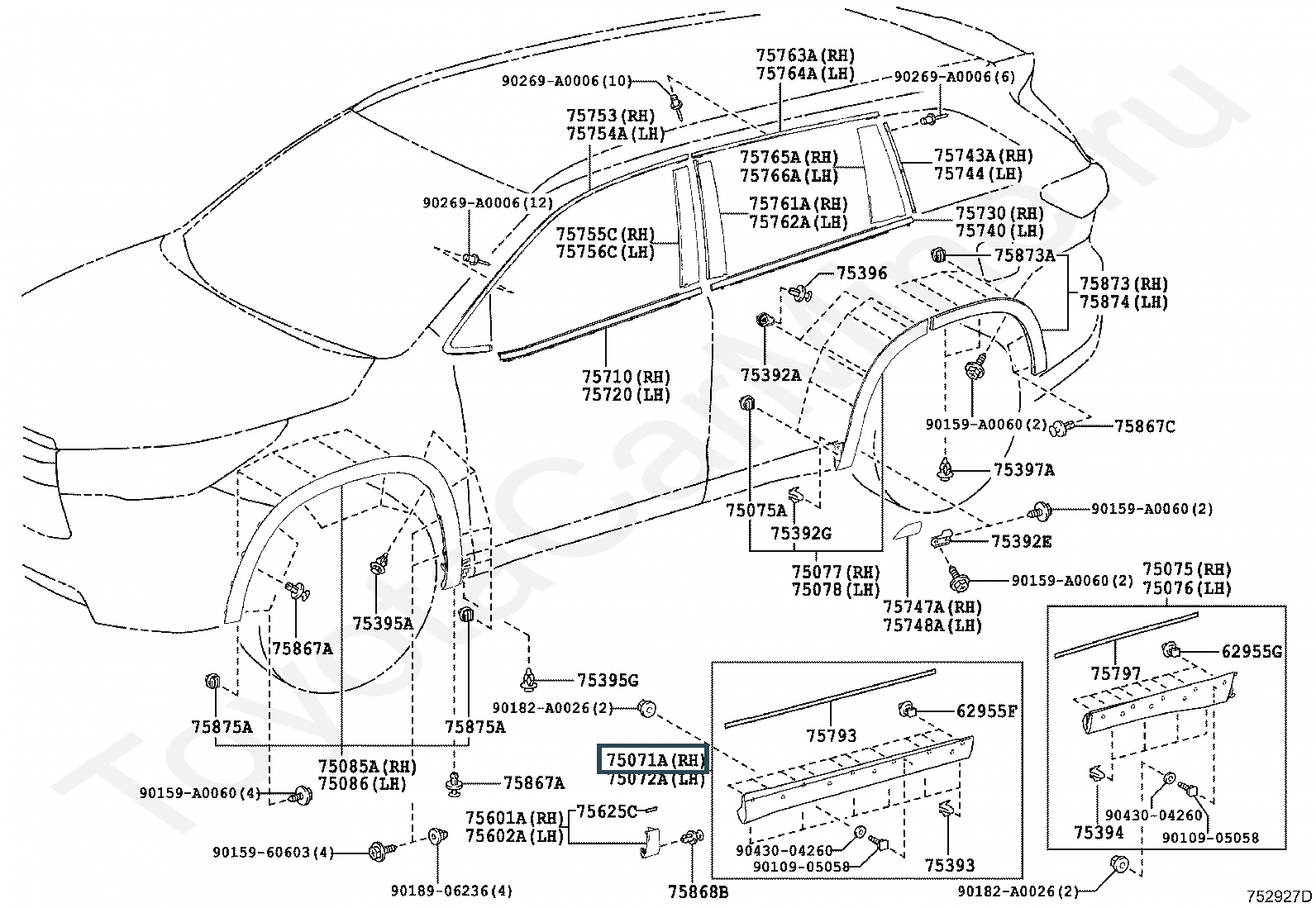 75071-0E081-J1, Молдинг двери передний правый