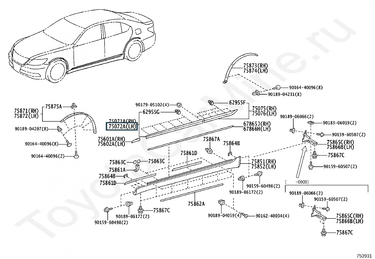 75072-50050-E0, MOULDING SUB-ASSY, FRONT DOOR, OUTSIDE LH