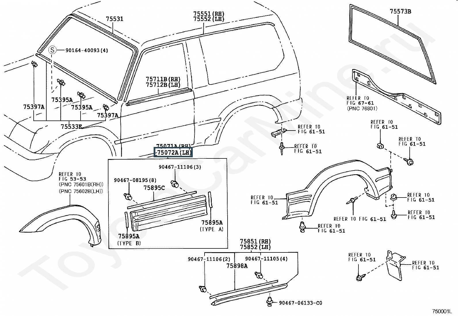 75072-60010-G0, MOULDING SUB-ASSY, FRONT DOOR, OUTSIDE LH