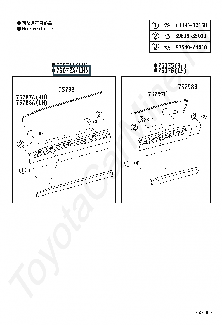 75072-60120-A1, MOULDING SUB-ASSY, FRONT DOOR, OUTSIDE LH