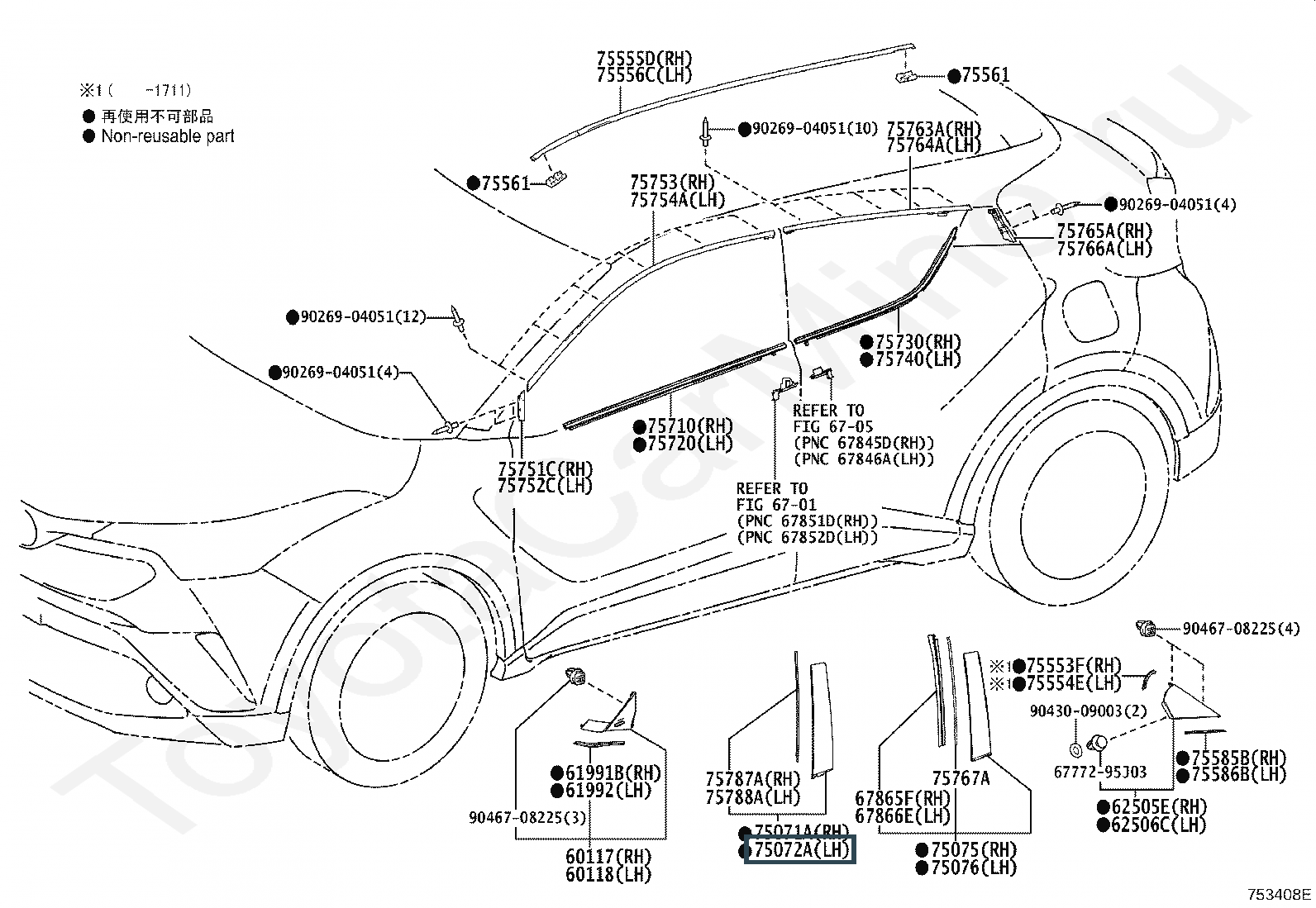 75072-F4020, MOULDING SUB-ASSY, FRONT DOOR, OUTSIDE LH