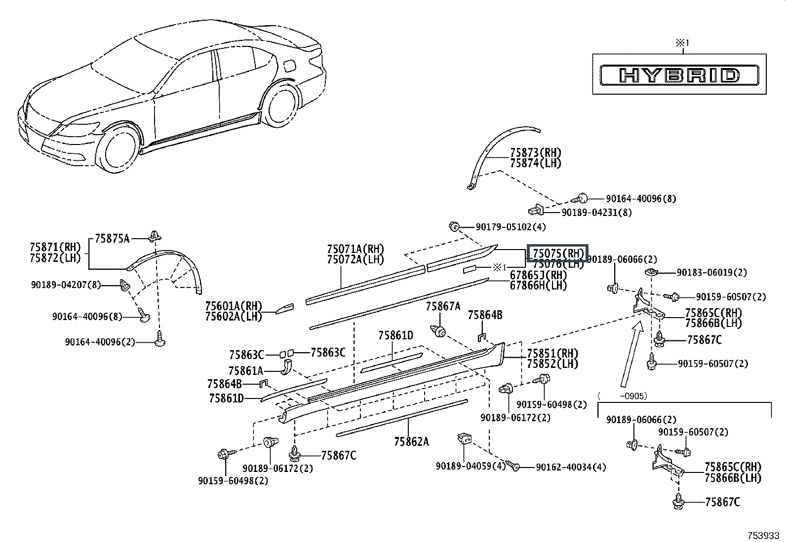 75075-50070-E1, MOULDING SUB-ASSY, REAR DOOR, OUTSIDE RH