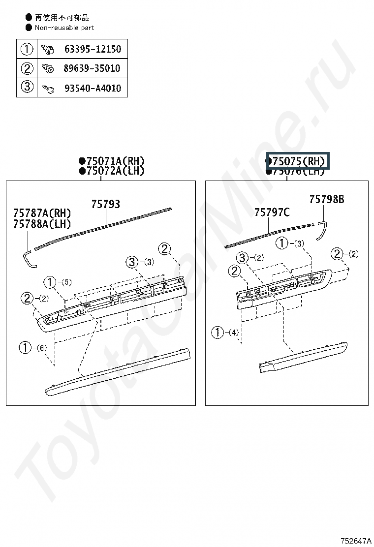 75075-60110-A0, MOULDING SUB-ASSY, REAR DOOR, OUTSIDE RH
