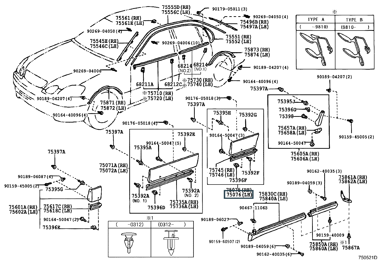 75076-30061-C0, MOULDING SUB-ASSY, REAR DOOR, OUTSIDE LH