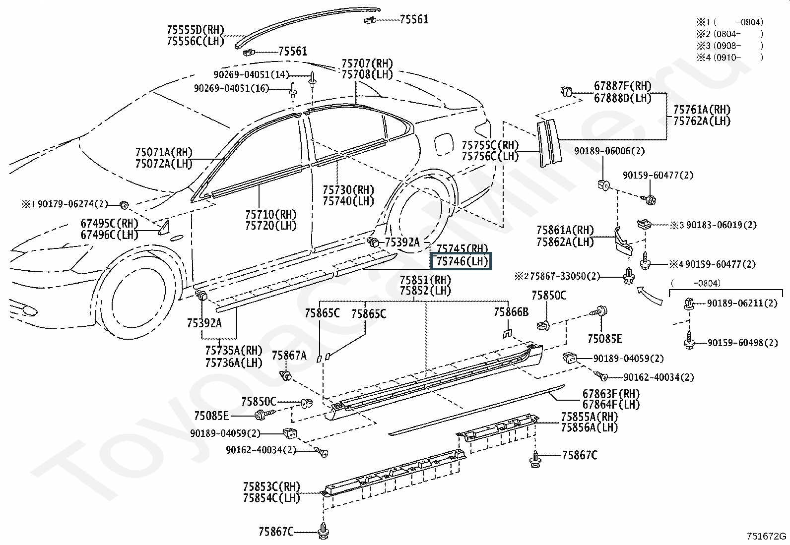 75076-33160-C0, MOULDING, REAR DOOR OUTSIDE, LOWER LH