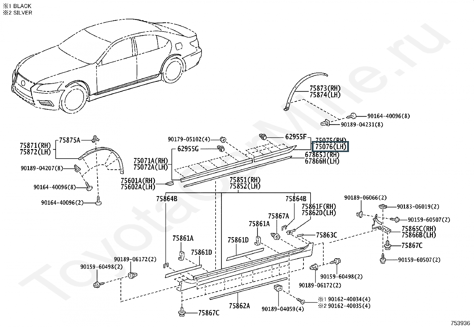 75076-50200-C2, MOULDING SUB-ASSY, REAR DOOR, OUTSIDE LH
