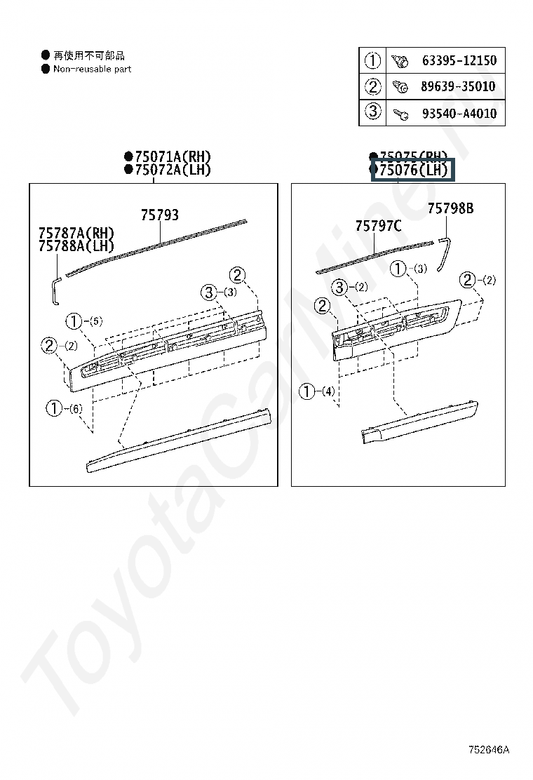 75076-60150, MOULDING SUB-ASSY, REAR DOOR, OUTSIDE LH