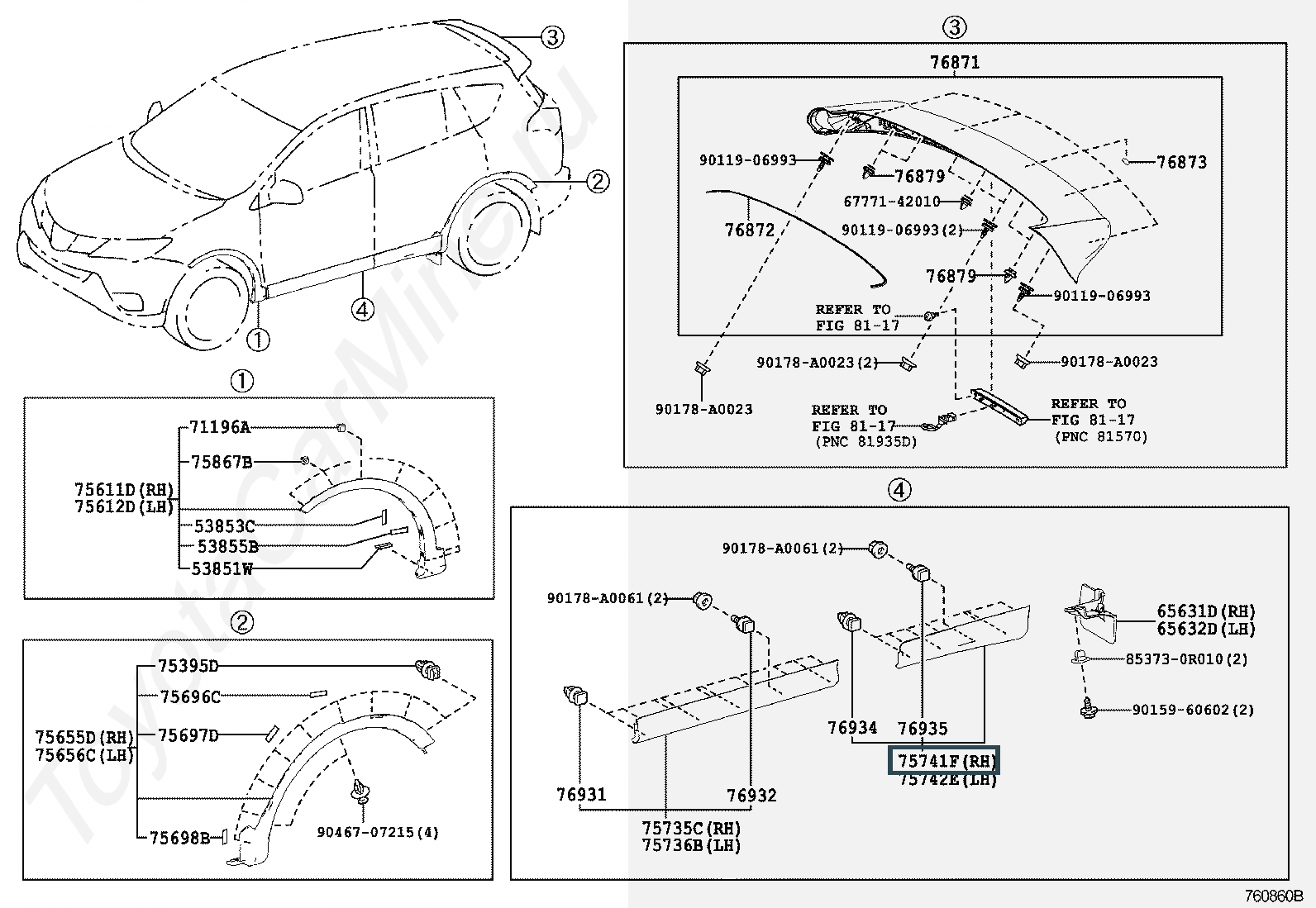75077-0R040, MOULDING, REAR DOOR, OUTSIDE RH