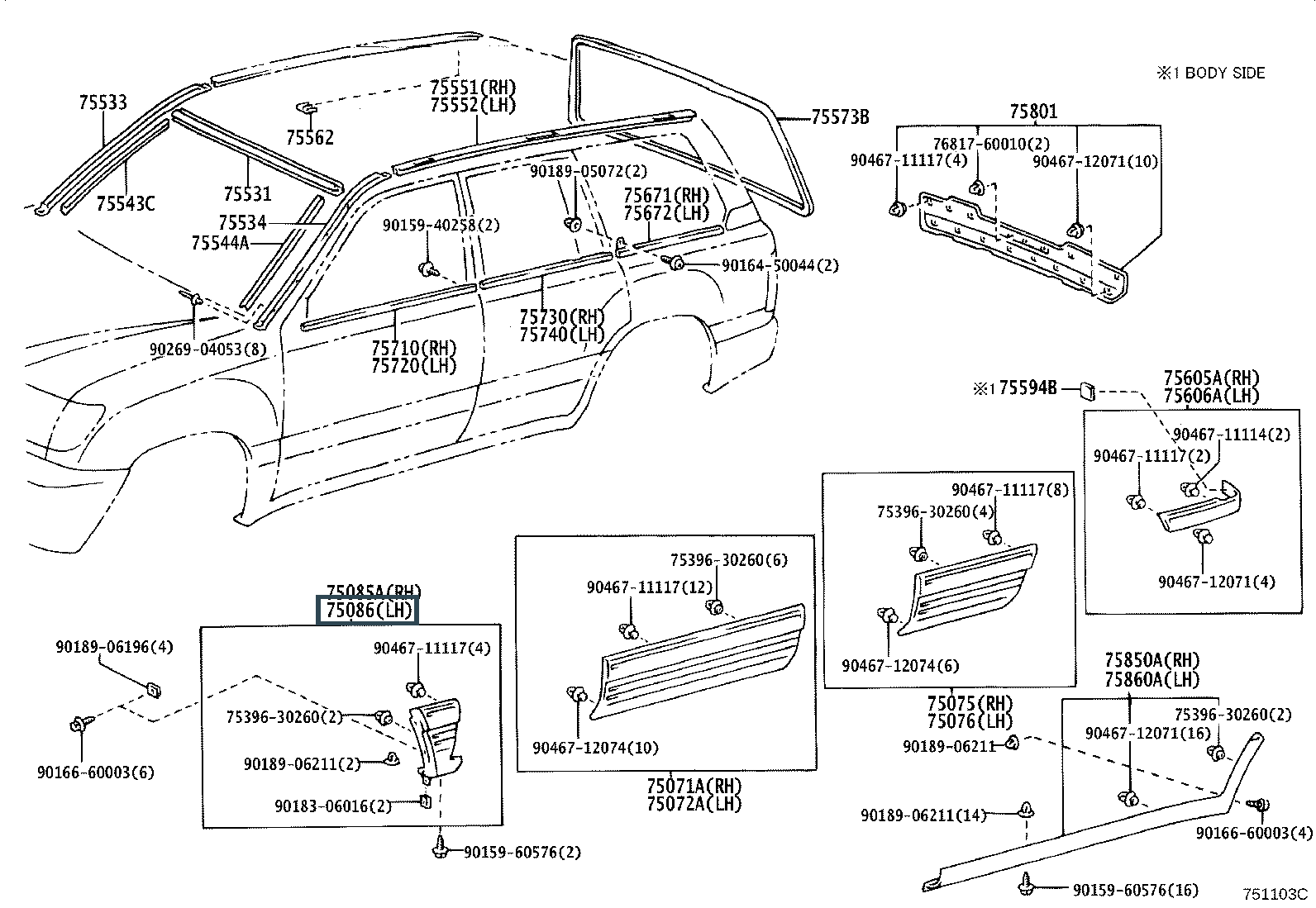 75086-60011-A2, MOULDING SUB-ASSY, FRONT FENDER WHEEL OPENING, LH