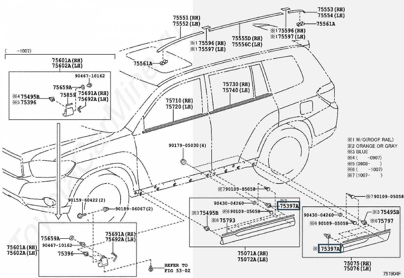 75397-0E010, CLIP, OUTSIDE MOULDING, NO.3