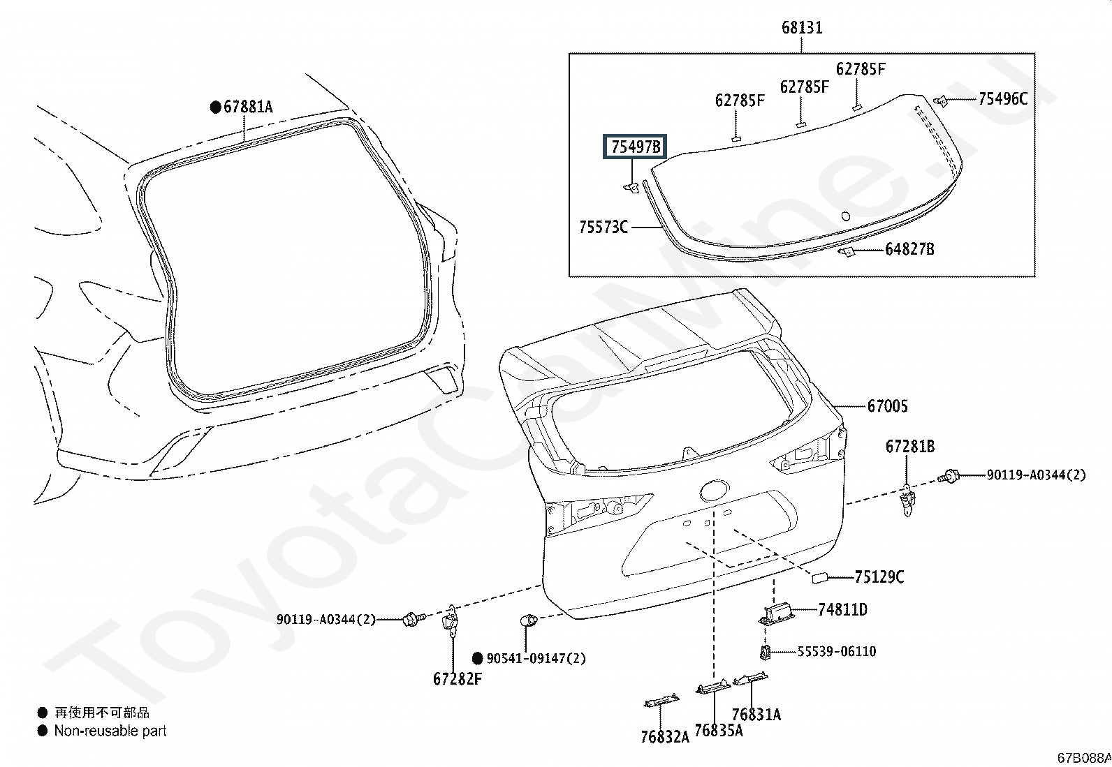 75497-0E010, CLIP, BACK WINDOW OUTSIDE MOULDING, LH
