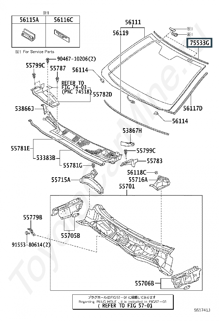 75531-50050, MOULDING, WINDSHIELD, OUTSIDE