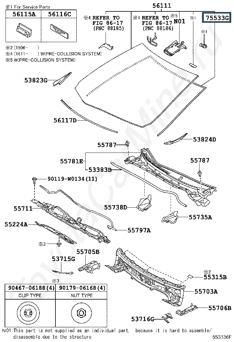 75533-12690, Молдинг лобового стекла