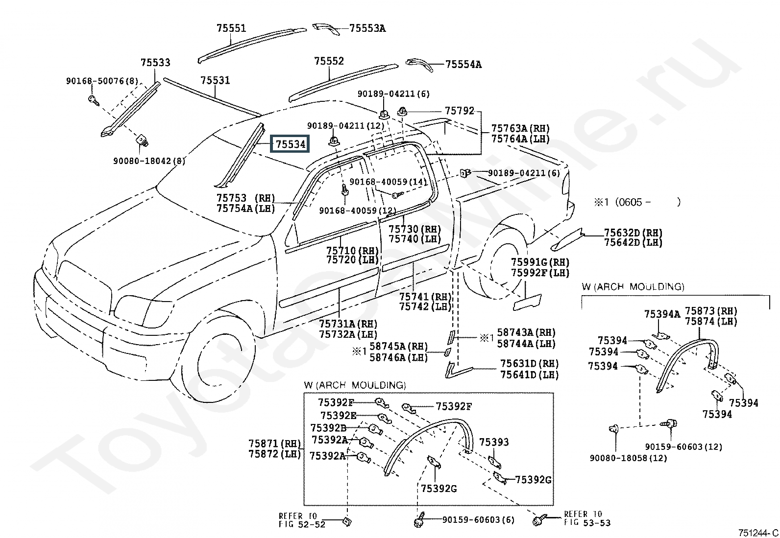 75534-0C030, MOULDING, WINDSHIELD, OUTSIDE LH
