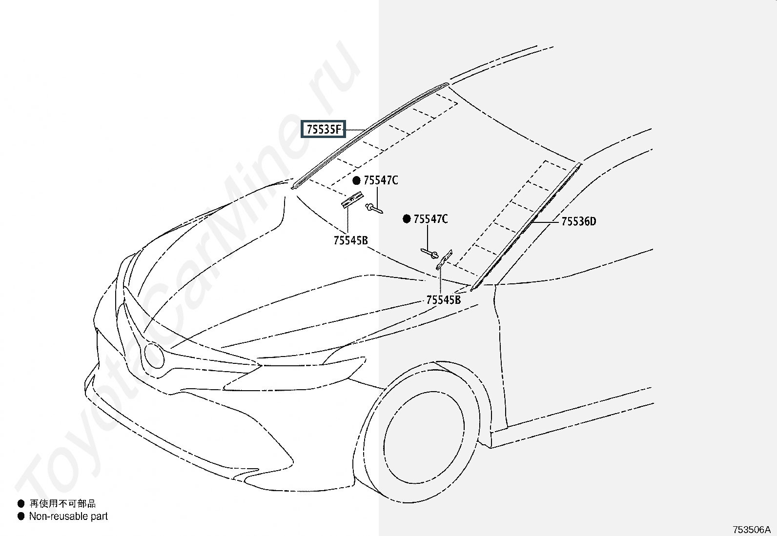 75535-06010, MOULDING, WINDSHIELD, OUTSIDE LOWER RH