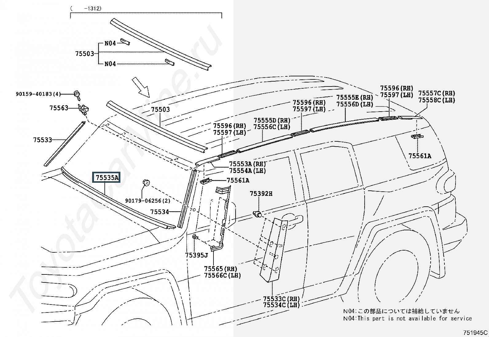 75535-35011, MOULDING, WINDSHIELD, OUTSIDE LOWER