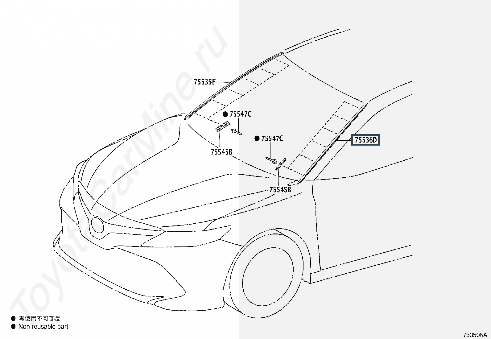 75536-33030, MOULDING, WINDSHIELD, OUTSIDE LOWER LH