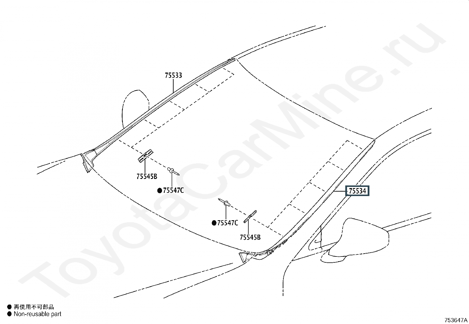 75536-33070, MOULDING, WINDSHIELD, OUTSIDE LH