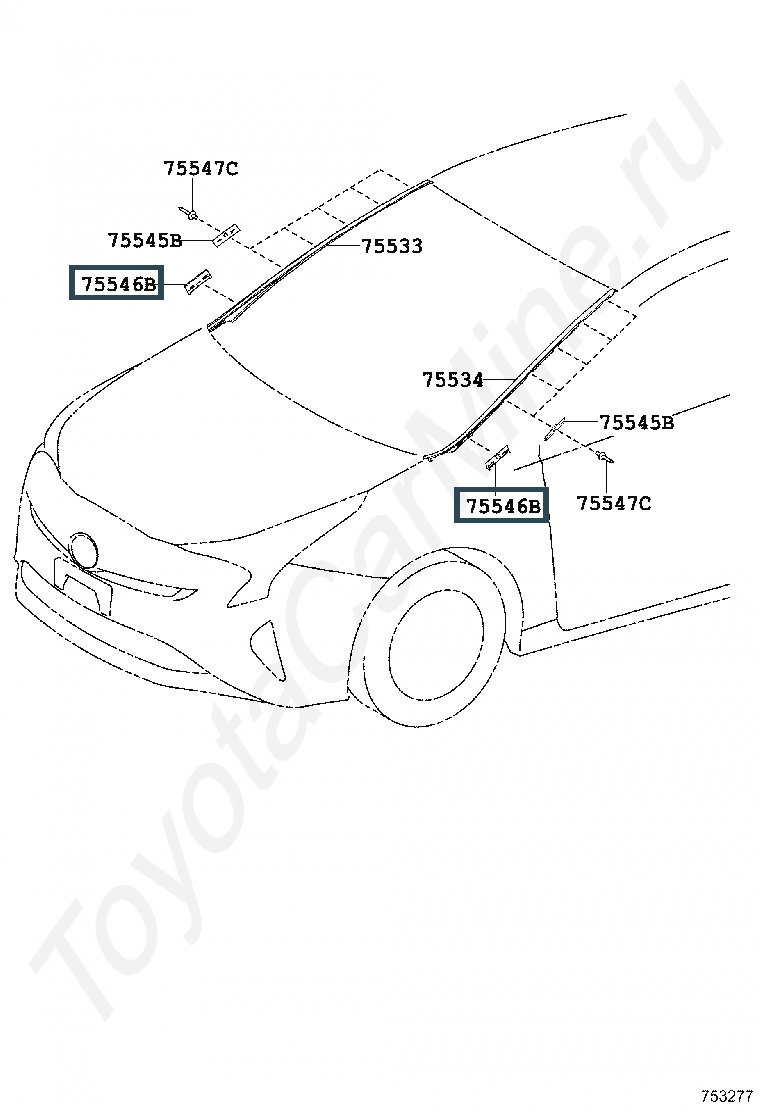 75546-47010, CLIP, WINDSHIELD OUTSIDE MOULDING, NO.2